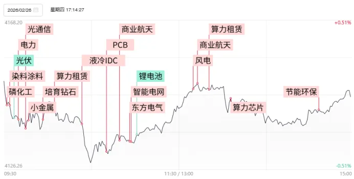 算力硬件、算力租赁、风电、环保板块涨幅居前,影视、房地产、锂电池、保险板块等板块跌幅居前。