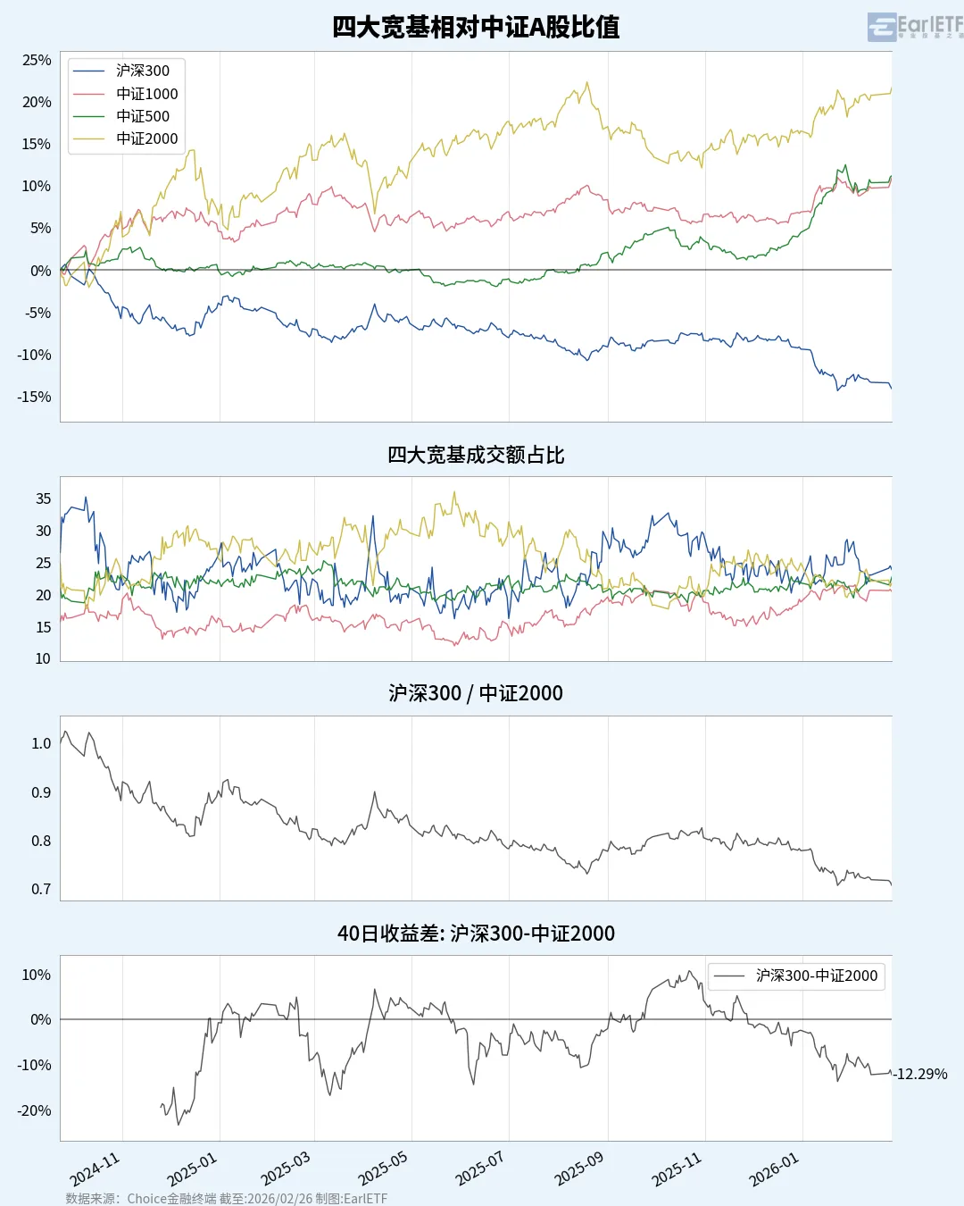 四大宽基相对中证A股比值走势