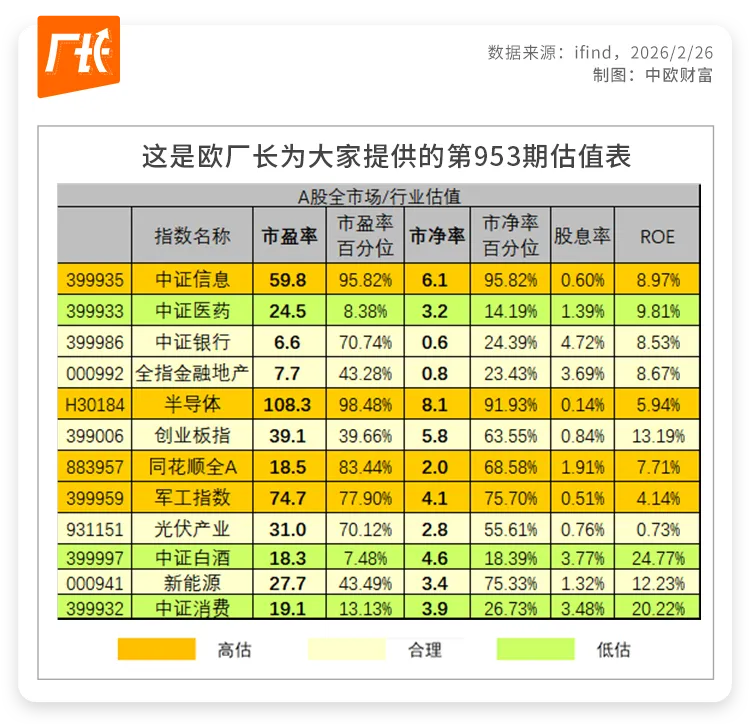 截至收盘,中证全指报涨0.21%,两市共计3748只个股上涨,101只个股涨停,两市成交额无明显变化,合计成交25566亿元。(来源:ifind,2026/2/26)