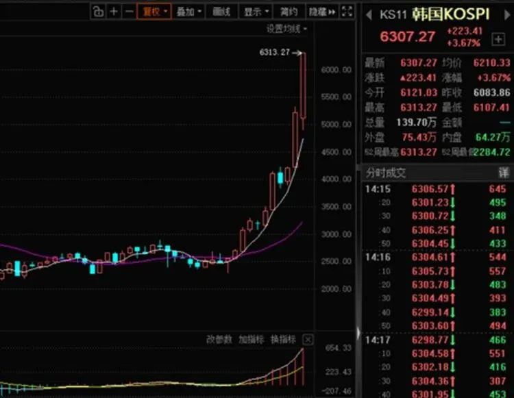 今天的A股市场整体偏震荡,呈现探底回升走势,三大指数涨跌不一,沪深两市成交额2.54万亿,较上一个交易日放量759亿;共2485只个股上涨,2870只个股下跌,其中78只个股涨停。从板块来看,算力硬件涨幅居前,PCB、CPO、液冷服务器、算力芯片概念均表现强势,深南电路、大族激光、广合科技、川润股份涨停;小金属概念表现活跃,云南锗业、章源钨业双双2连板;电力板块走强,赣能股份2连板,华银电力涨停。下跌方面,影视院线概念股连续大跌,博纳影业触及跌停。【亚太股市大牛市疯狂加速】韩国股市大牛市疯狂加速,2026年不到2个月,韩国股市已经暴涨50%,这还是在2025年全年暴涨75%的基础之上。日本股市也很疯狂,2026年累计上涨超16%,不断刷新历史新高。同样,中国台湾股市,2026年累计上涨超22%,不断刷新历史新高。