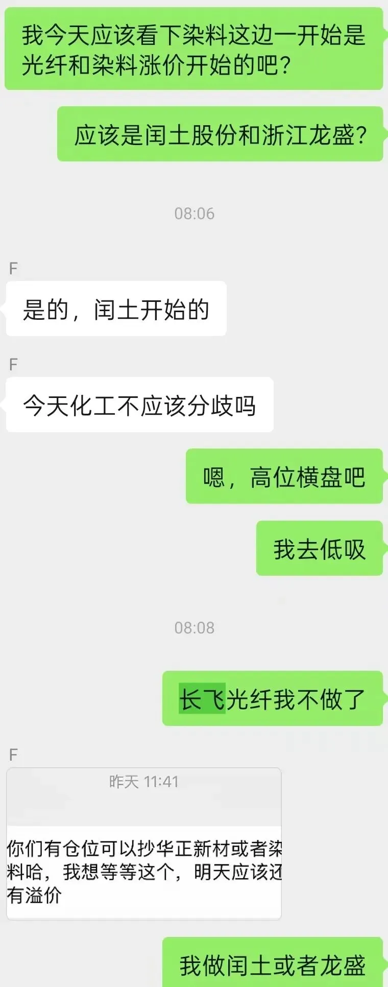 涨价逻辑是这波的光纤和染料开始的,这里的q布的宏和科技还是mlcc的风华高科都是补涨,所以昨天去低吸高位的染料和光纤是没问题的,但是昨天科技的强度确实不行,加上晚上英伟达业绩落地,所以不太想博弈,想等今天再低吸。