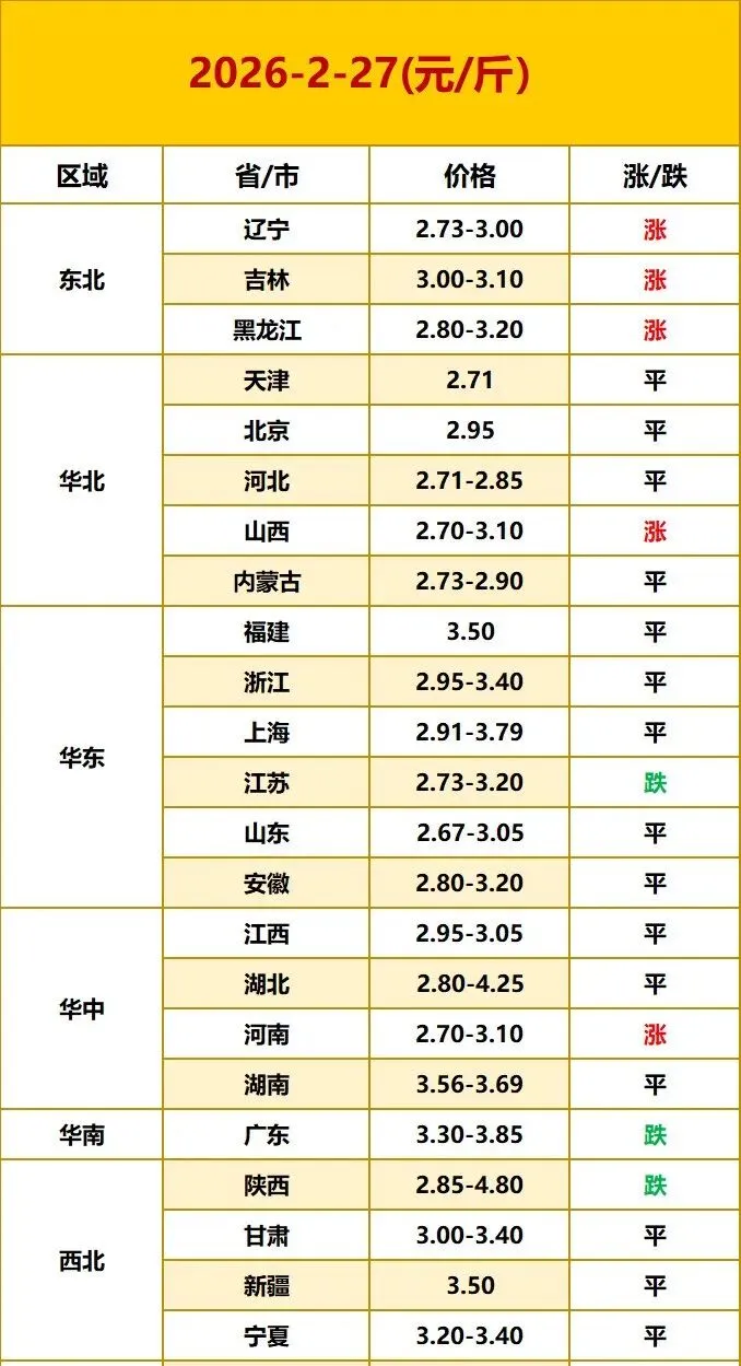 2026年2月27日全国各地鸡蛋报价.......................................................................................................