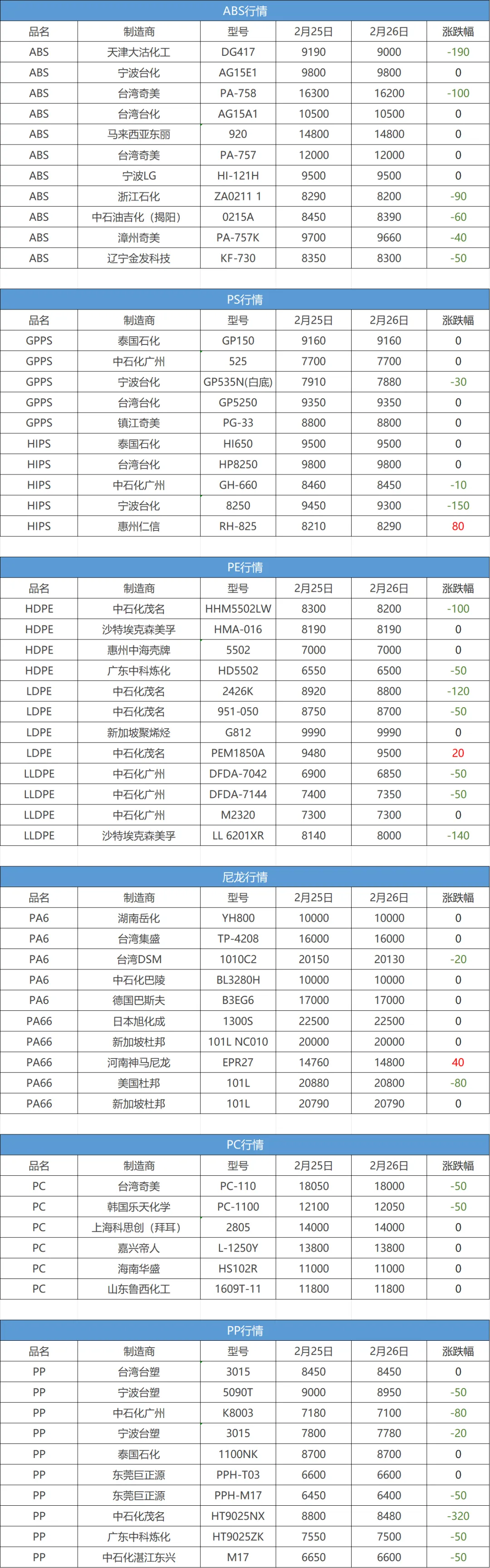 今日行情