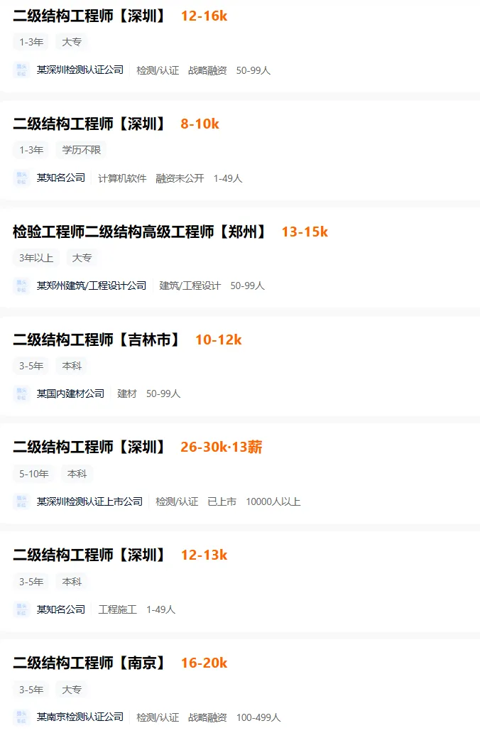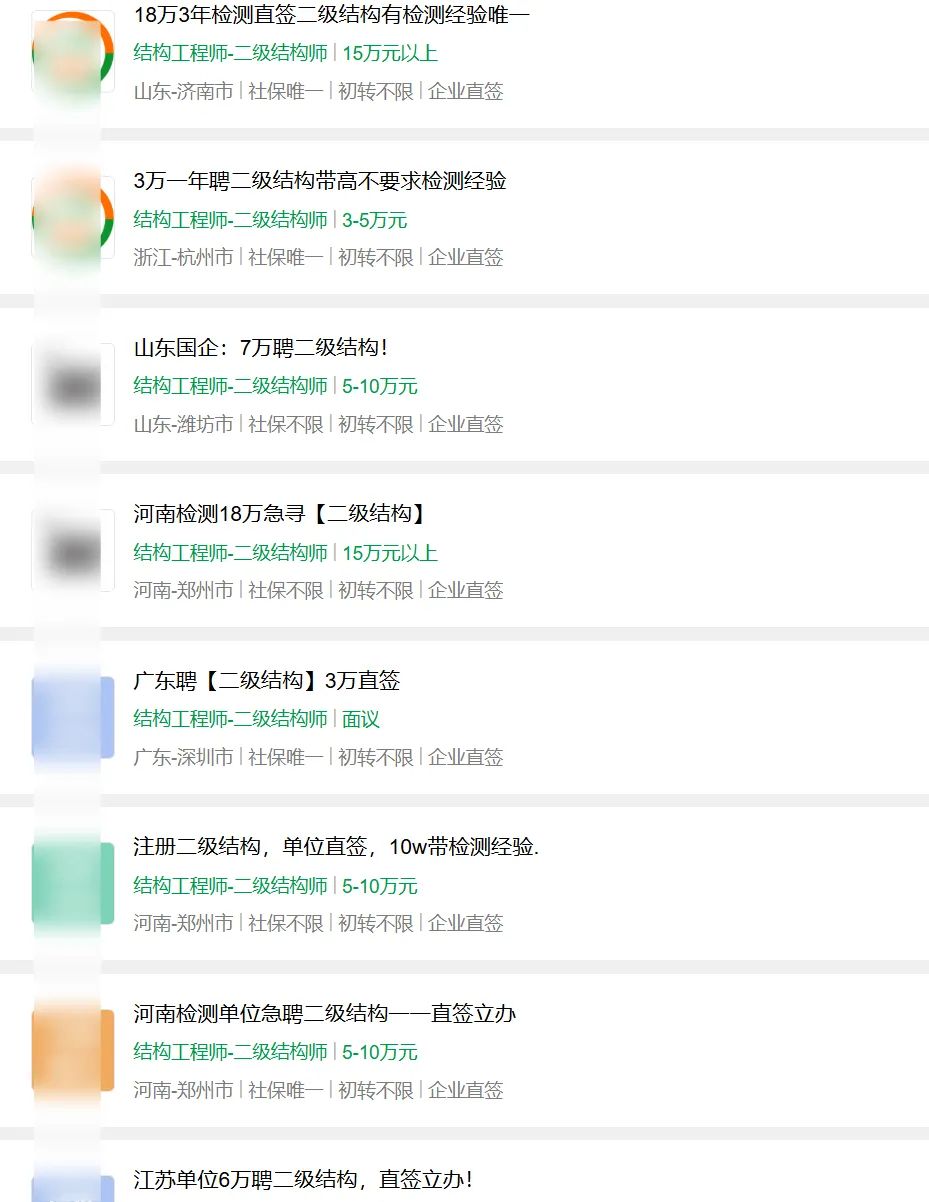 二级结构基本上都是是检测单位在要,如果想本地发展的老哥,可以挨个联系一下,当然小型设计院、电力院也需要。