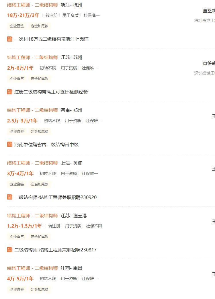 还有,有些省份动态核查资质,时不时会公布哪些单位缺什么证书,也是一个渠道台。岩土结构有哪些渠道找单位兼职/全职看看哪些单位要岩土结构,要多少?