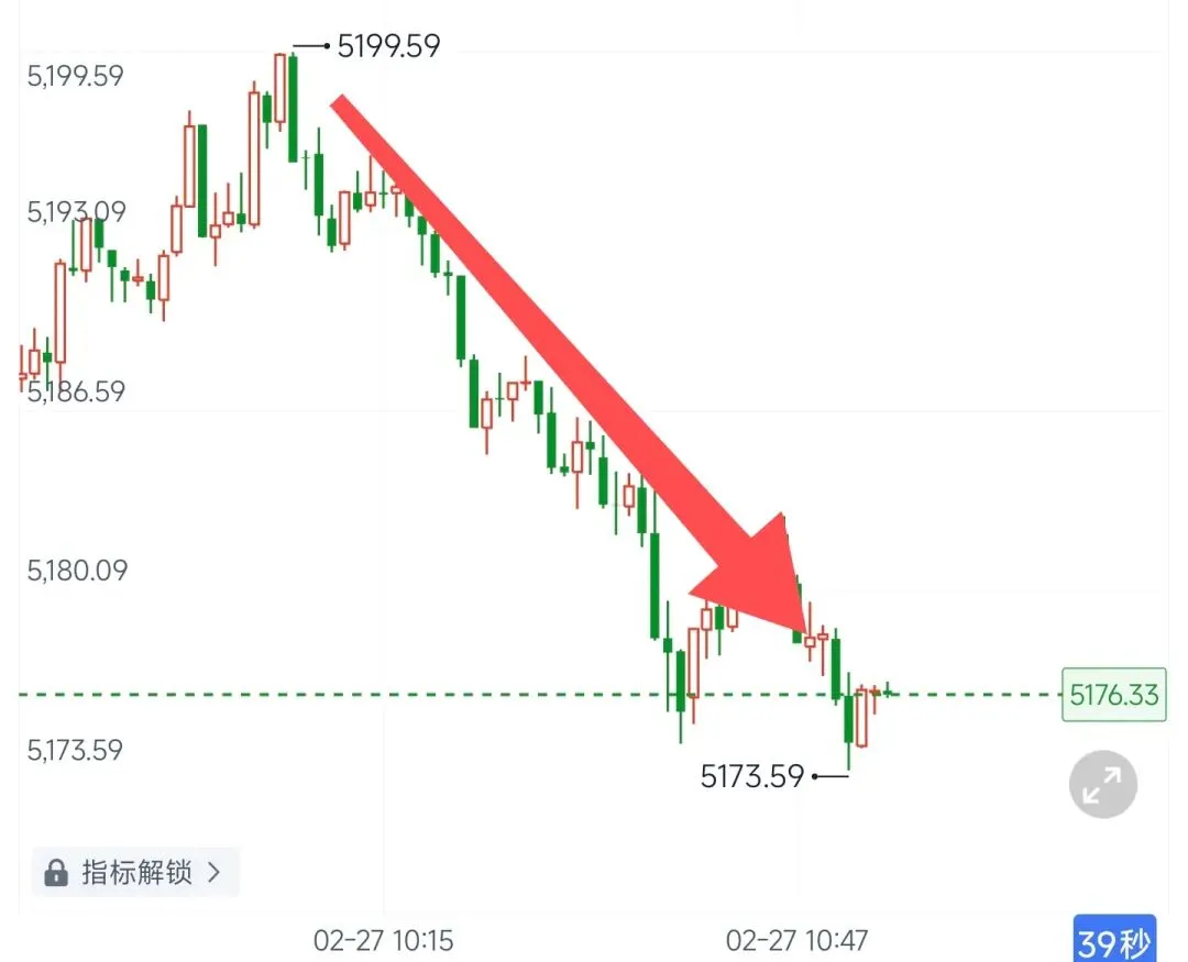 早间给的思路,围绕5200做高抛,目前行情由5199抵达5173,最高已有26點空间!你吃到多少呢?