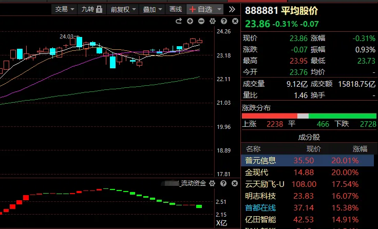 指数方面,平均股价目前经过前两天的量能放大,已经连续2天翻红,今天小幅缩量,如果下午不出现明显缩量流动资金今天依旧是翻红的情况。