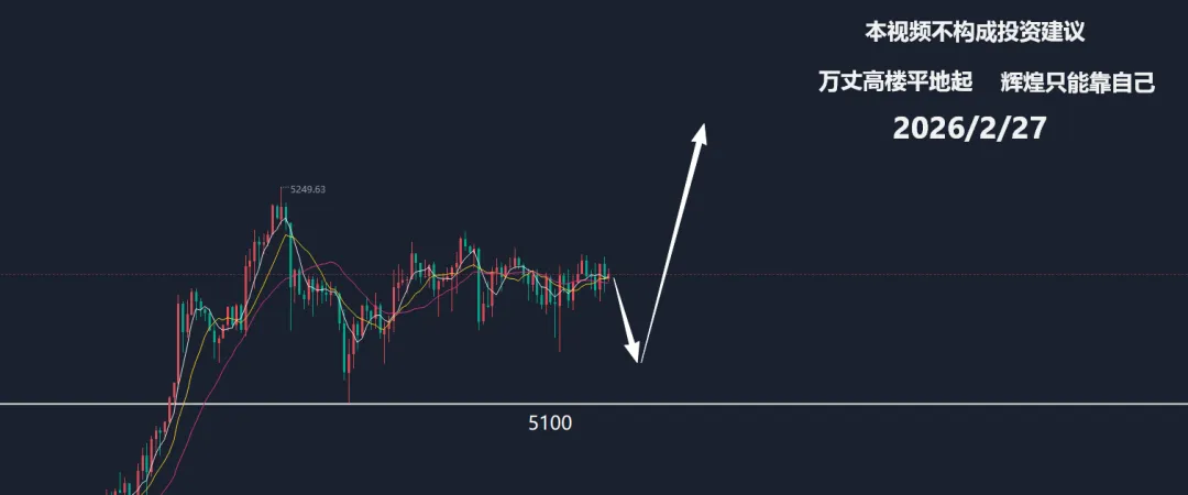 当前整个市场都在高位盘旋中,持续在5100-5250区域范围内来回震荡摩擦,市场在等待一个导火线信号,以引发巨大动荡的到来,这个信号就是美伊谈判的标志性结果。昨天我们文章跟视频都有讲述到,目前市场唯一的评判标准就是何时谈判得出结果,是否中东战争再次来临,如果来临应该是长期战争,就好像俄乌局势已经持续4年之久,而黄金也是从俄乌局势以来整整上涨了4年之久。在当前我们应当考虑的不是黄金还能涨多久,而是目前黄金的风险到底在哪?做交易的人,往往都妄想一夜暴富,一单暴富,很少有人会去考虑风险如何控制,仓位如何控制,单单只是看到了上涨过程中或者下跌过程中的盈亏比,而否定或者忽视了交易之中最重要的风控比例。这就是人性,能说会道很容易,但是要做到知行合一却非常难,这需要磨炼出属于自己的一套交易系统才能战无不胜攻无不克。黄金最近几天都在高位震荡,这是蓄力已久的一场平静的波动,典型的洗盘行为动作,如果你把持不住,盲目追涨杀跌,很容易就掉入市场的陷阱,现在是属于观望或者等待的那个时刻,而非野牛冲撞的时刻.从当前观点来看,高位横盘的越久对未来冲刺的力量就越大,月线周线级别都处于上涨过程当中,而日线级别存在震荡上涨的节奏当中。自突破了5120压制力之后,目前算是站稳了脚跟,接下来就是等待事件的突发带来的动能。从1小时图来看,黄金还是在5100上方来回徘徊,这里是短期支撑位,也是属于顶底转换位置。所以当前大方位还是继续看涨,但是尽量低多而行,在没有突破5250-5270压力位之前,打短为主。特别要关注的是美伊谈判的结果,将可能随时改变短期方向的风险。所以务必带好止损刹车位,以免错杀。免责条款:市场有风险,投资需谨慎。本文内容不构成个人投资建议,也未考虑到不同读者的个人财务状况和投资诉求,仅记录作者个人观点及看法,据此投资,责任自负。