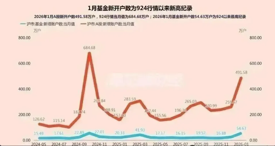 刚看了个1月的开户数据,出现了明显跳涨。我们之前说过平稳增长都没事,但一旦跳涨就有可能见小顶。