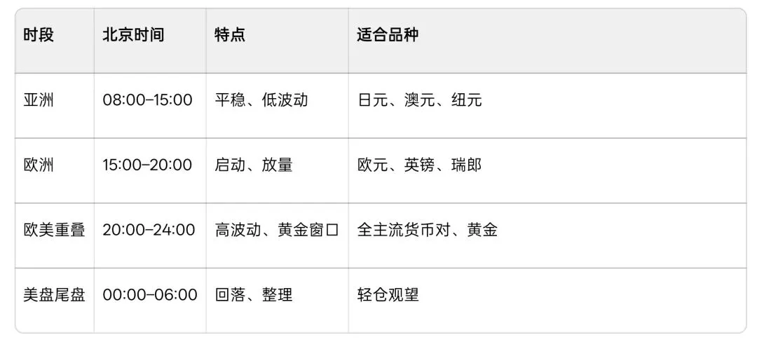 - 外汇、贵金属、指数、原油等品种时间略有差异