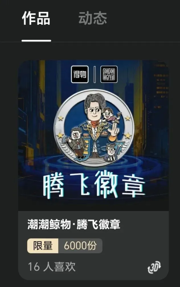 据了解,「潮潮鲸物」已经在鲸探发行了首款数字藏品——“潮潮鲸物•腾飞徽章”。