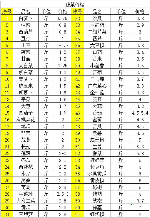 1、蔬菜价格