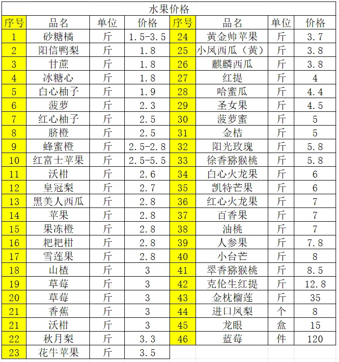 2、水果价格
