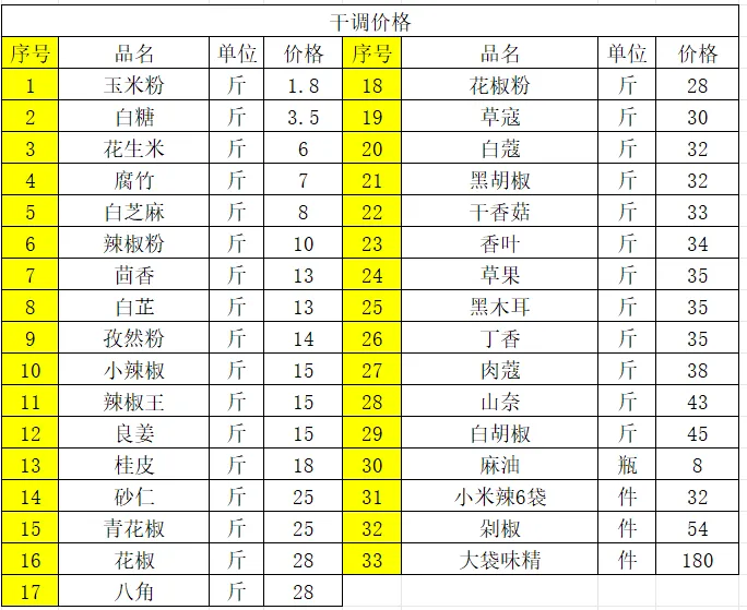 4、干调价格