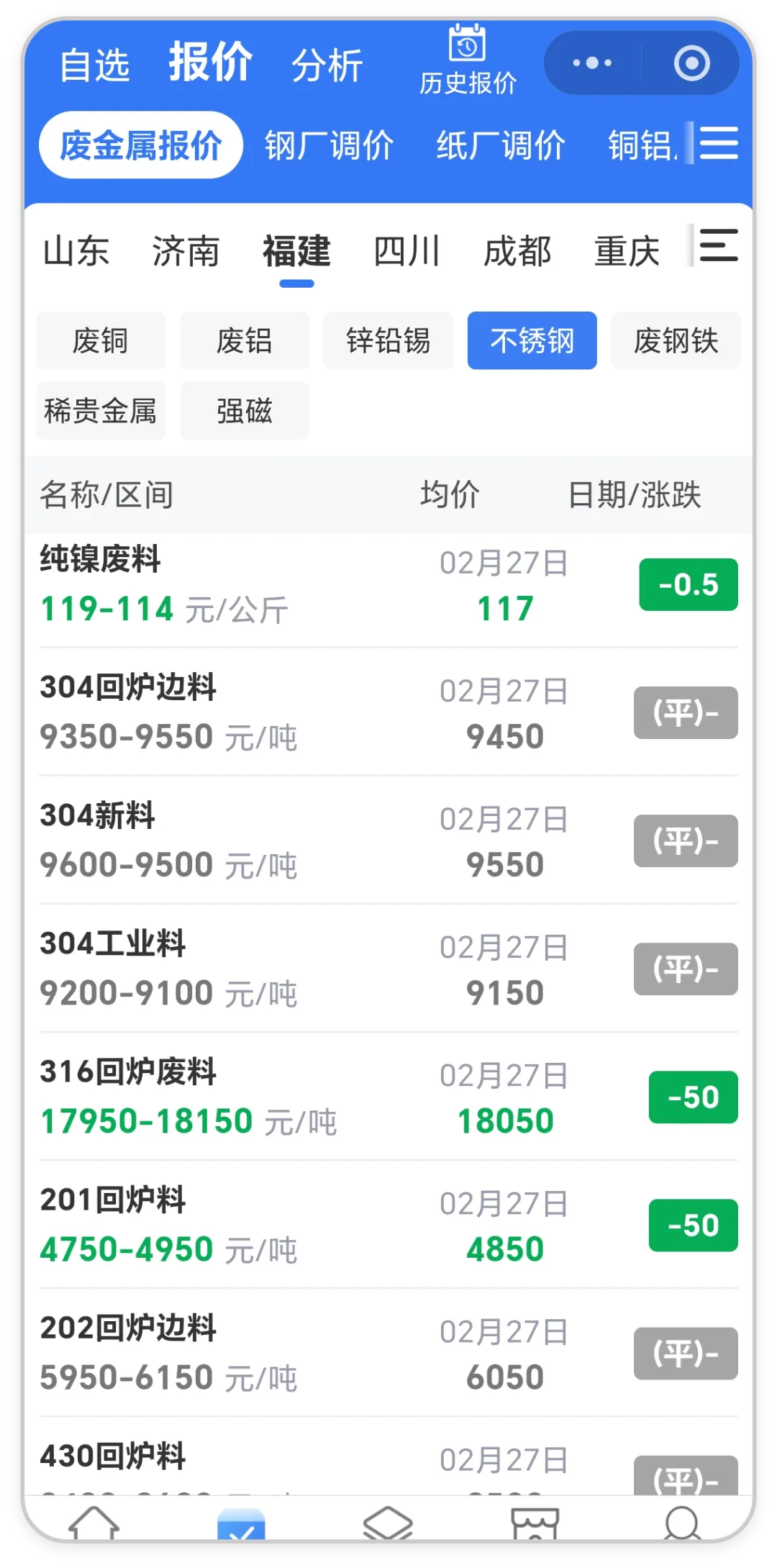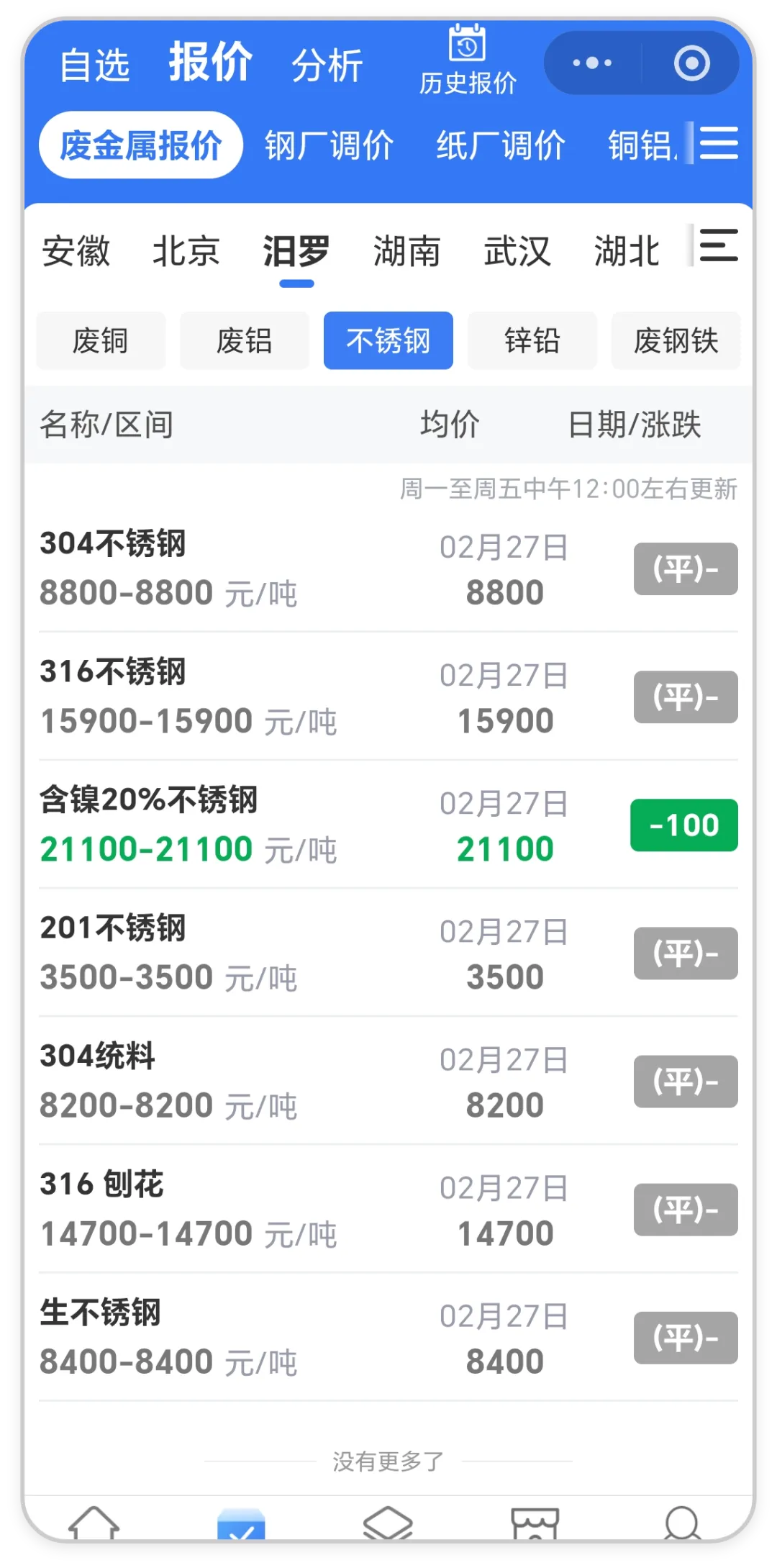废不锈钢稳中偏弱!全国废不锈钢最新价格行情(2月27日)