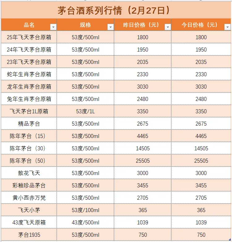 飞天下跌,公斤上涨!茅台酒2月27日行情变化详情