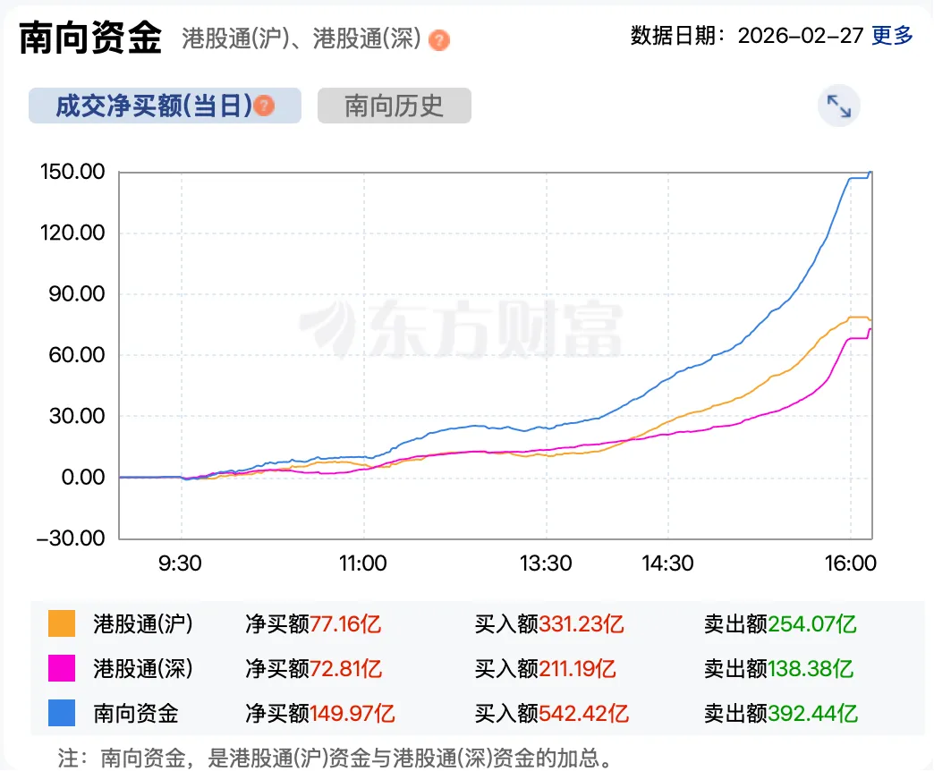 港股二月收官止跌反弹,今日恒指涨0.95%、科指涨0.56%;黄金与创新药领涨,南向资金狂买近150亿港元抄底,机构聚焦业绩期能否驱动市场回暖。