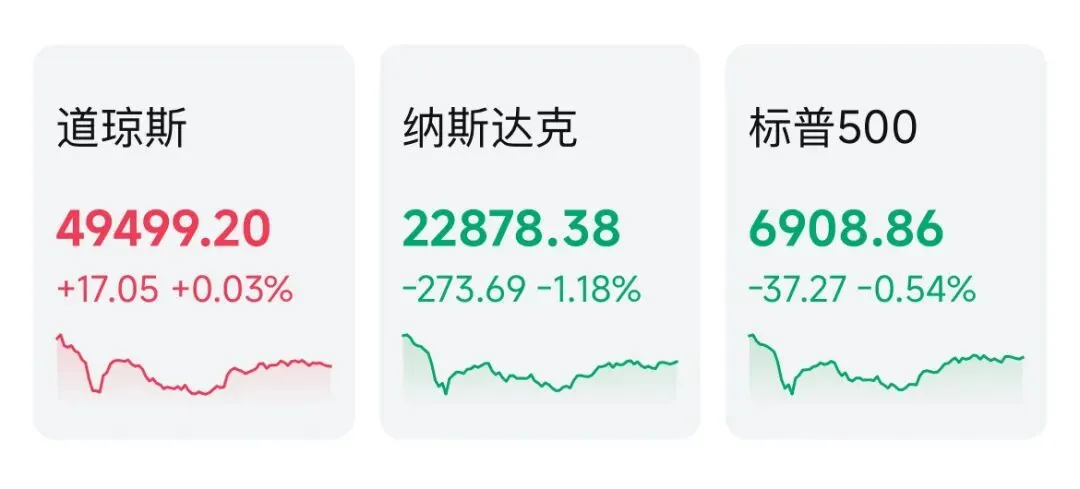 • 道琼斯:49499.20点,+0.03%,+17.05点