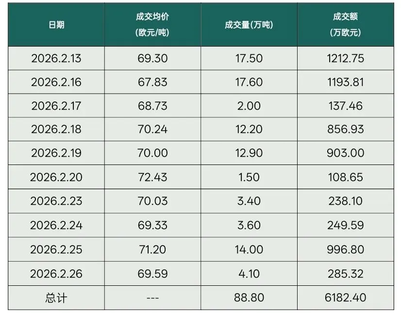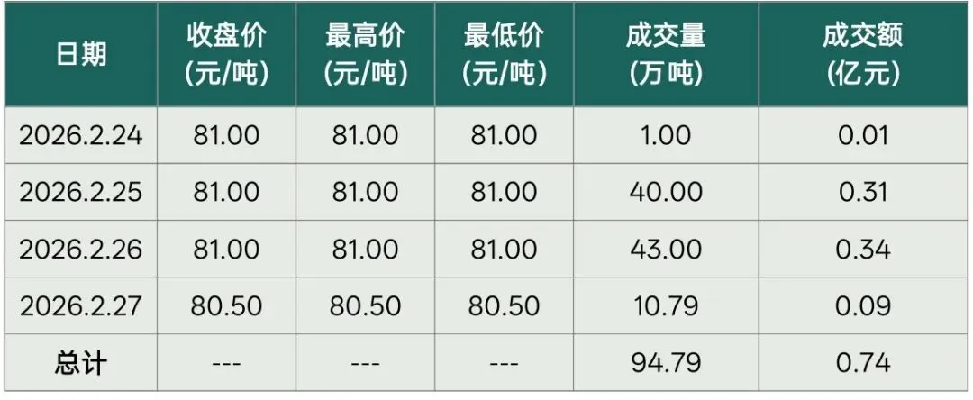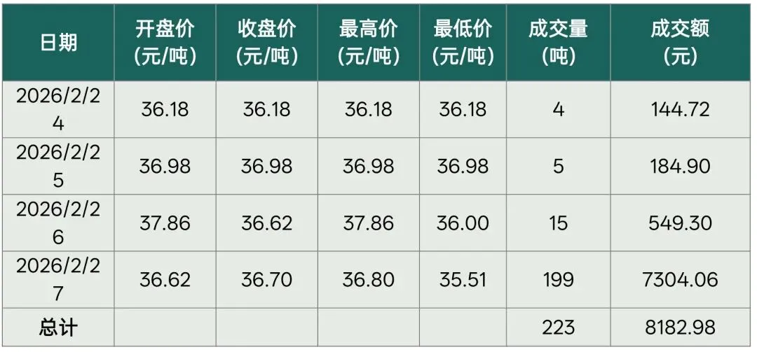 【全国行情】全国碳市场每周成交数据(20260224-0227)