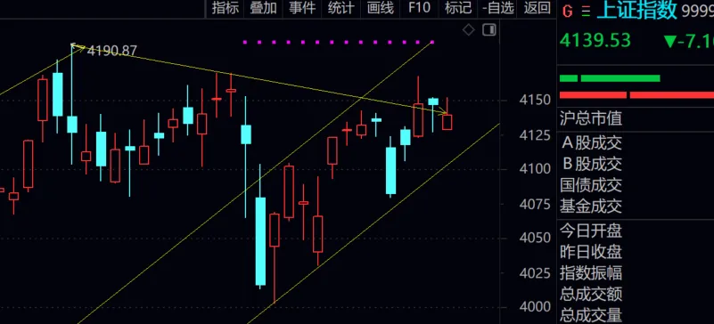 近期市场关键技术信号已逐步兑现,趋势方向愈发清晰。上证指数前期重要压力集中在4190点(阶段高点)与4170点一线,连接两大高点形成的下降趋势线,是判断趋势扭转的核心标尺。昨日指数已正式站上4130点、突破这条下降通道,今日盘面主动回踩4128点附近完成确认,支撑有效、企稳回升,呈现出标准的突破后回踩确认形态。