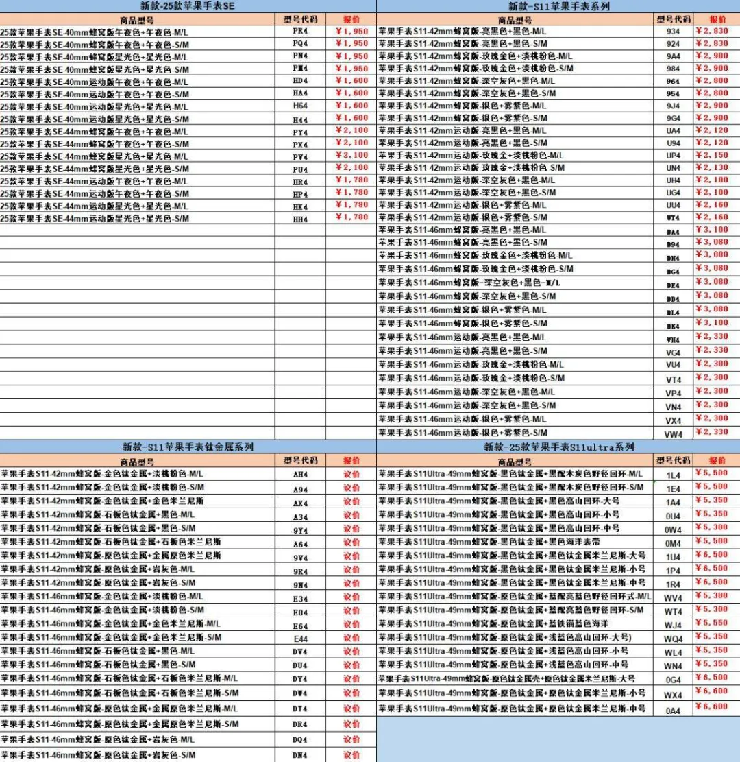 一、苹果行情(手机、平板、Macbook、手表)