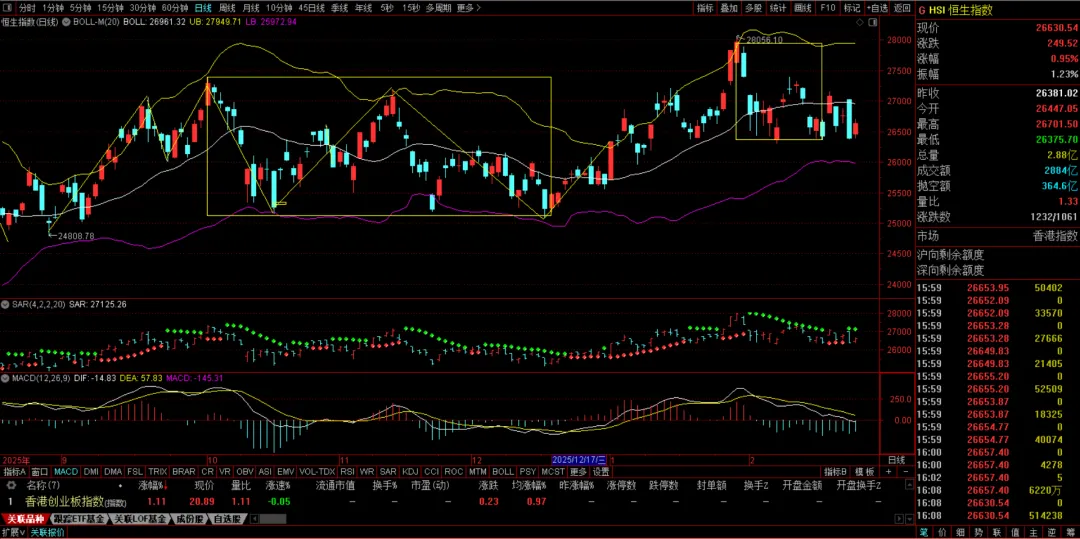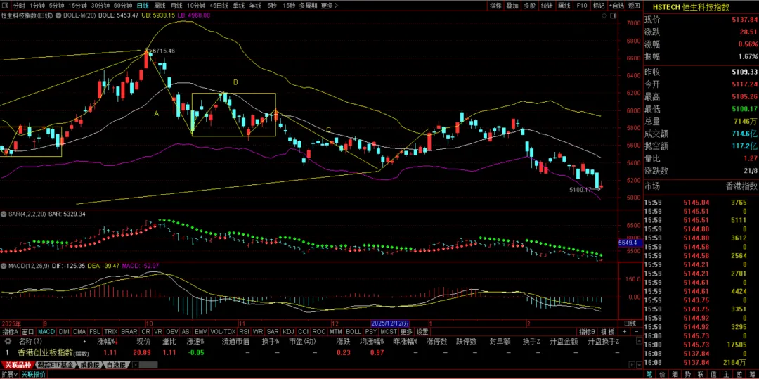 恒生指数以及恒生科技指数的疲软会。减弱南向资金流入的力度,加大北向资金流入的力度,有利于A股市场,有利于我们的战略技术主线。