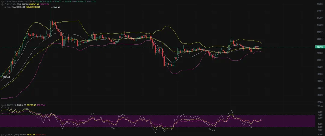 以太坊这边,今天主要留意2035这个位置。只要1-2小时级别站稳2035上方,回调结束,继续看涨。上方压力2083、2115、2150。如果跌破2035且反弹无力,那下方支撑就要看1975、1925、1890。
