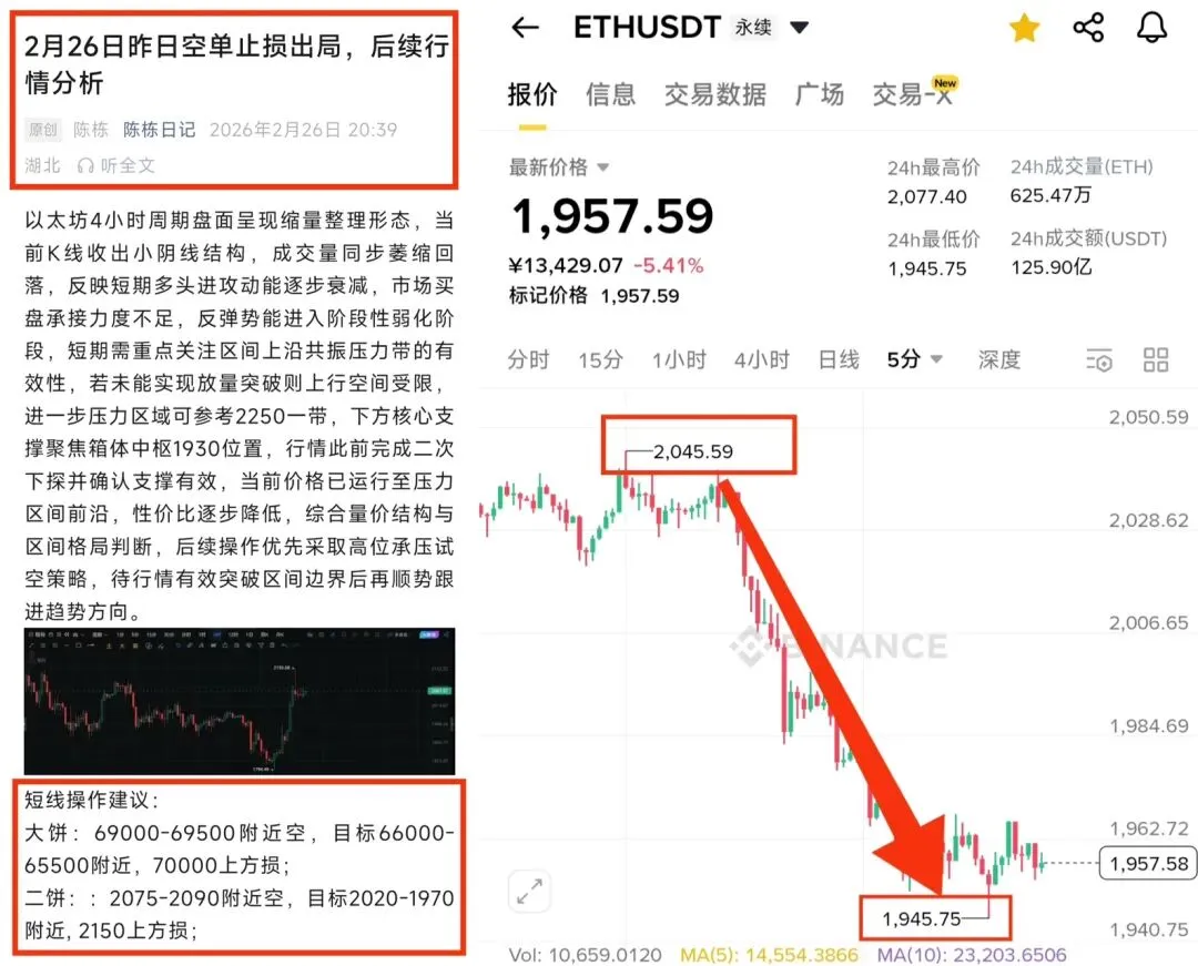 大家好我是你们的老朋友陈栋,大家都复工了,不知道最近操作状况如何呢?还是祝大家操作顺心,多多盈利,我们先回顾一下今日的行情:凌晨时段市场迎来宽幅波动,以太坊自2060附近快速下探至1975一线,短线回落幅度超85点,触及支撑后快速反弹至2040位置,收复大部分跌幅;比特币同步走深,从67600一线回落至66500附近,回撤幅度逾1100点,随后强势反攻至68000关口,反弹力度强劲,昨晚盘针对两大币种给出的区间预判与关键点位均精准兑现,实盘跟进的防守与止盈位置同步落地,防守参数结合实时盘口动态调整,主要面向实盘用户同步,公开内容仅作简要提示。