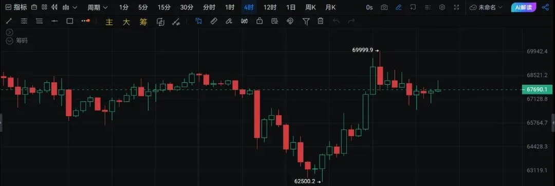 早盘阶段市场维持震荡上行节奏,以太坊由2000附近稳步拉升至2060一线,反弹幅度约60点,比特币则从66900附近上行至68200位置,涨幅接近1300点,多头阶段性发力明显。进入午盘后市场再度转向回落,以太坊自2050附近持续下行至1940一线,回调幅度扩大至110点,比特币同步承压,由68100一线回落至65700附近,短线回撤幅度超2400点。