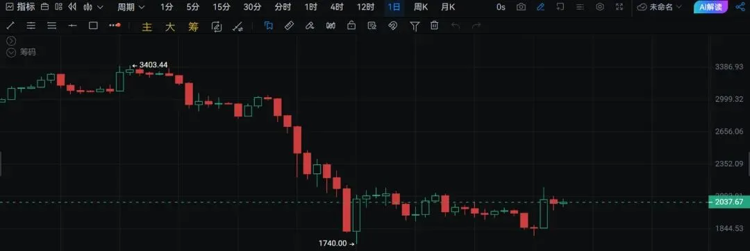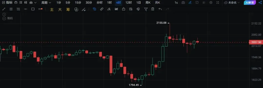 以太坊4小时级别当前呈现反弹承压后的弱势整理格局,价格虽短暂上破2100一线关键阻力,但后续量能跟进不足、上行动能持续衰减,短线冲高回落风险显著,此前依托破位跟进的多单需及时落袋为安并做好风控防护,整体短线操作仍以回调企稳后低多为主,下方重点关注2000整数关口与1950区域的双重支撑有效性,待回踩确认支撑后再择机布局。