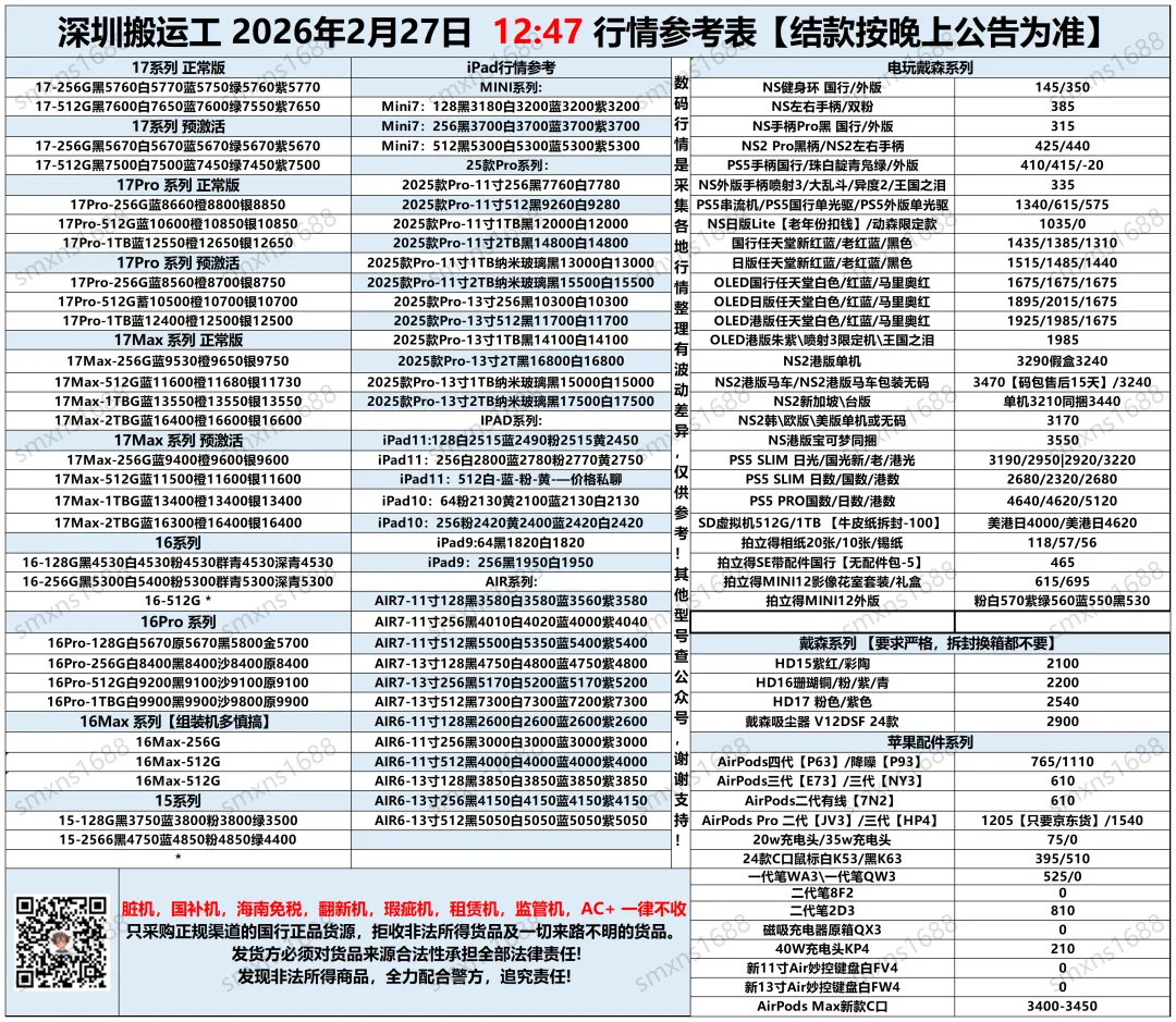 市场行情时刻波动,不一定全部更新到位,报价仅供出货参考。每晚会群公告公布实际结算价。我们是代卖模式,非定价接货,非咸鱼/顺丰上门打款。请知悉!感谢各位老板的信任与支持!