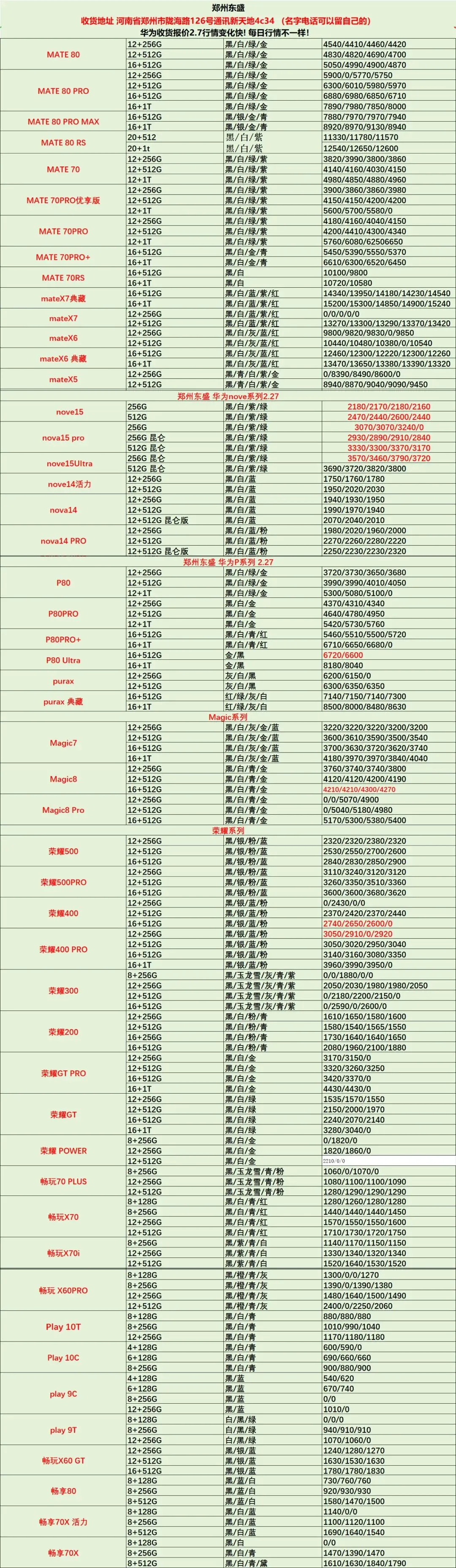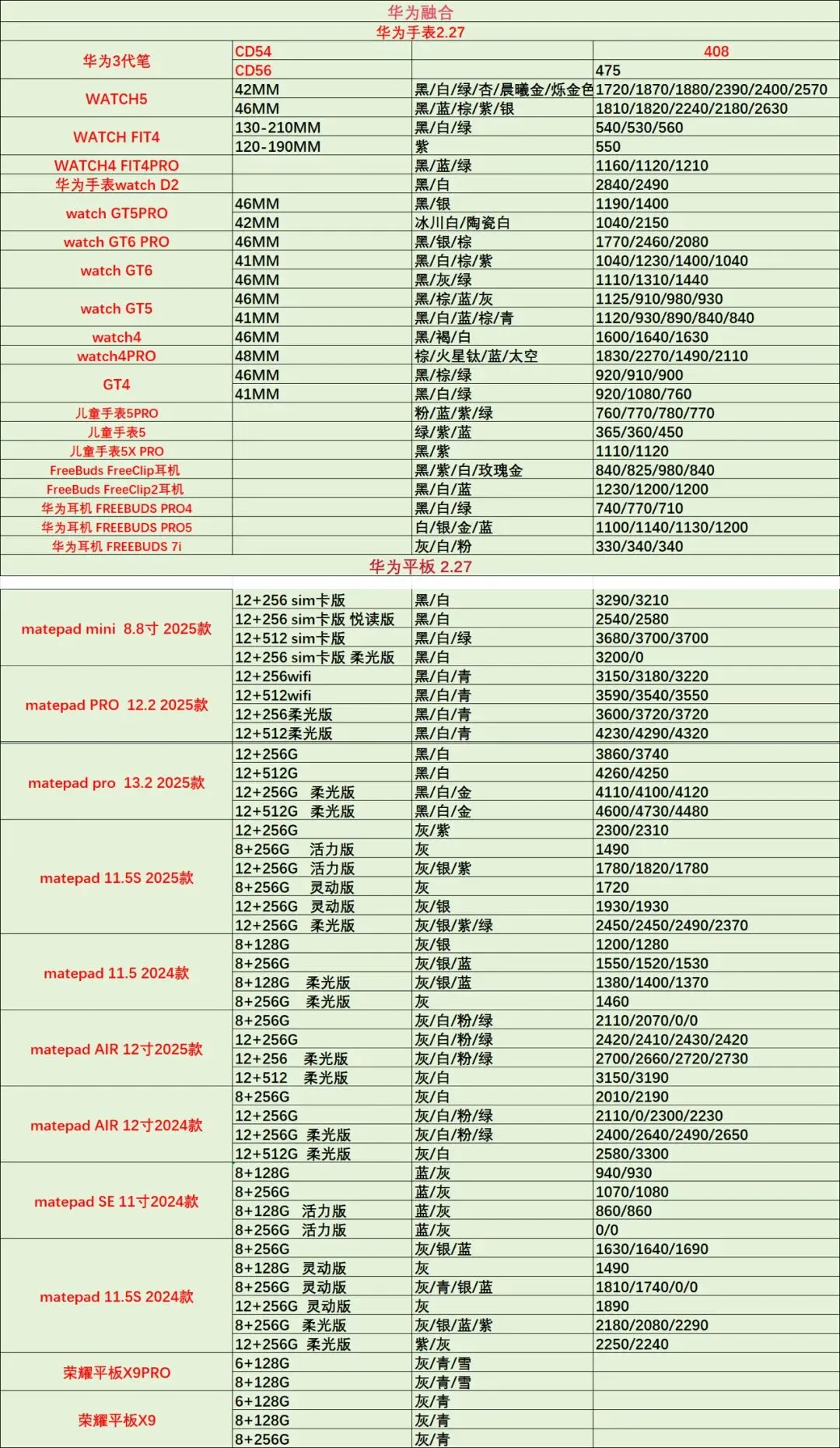今日手机行情2月27日-最新手机价格表查询 华为 手机 平板 穿戴 智能家居 生态链系列产品批发参考价