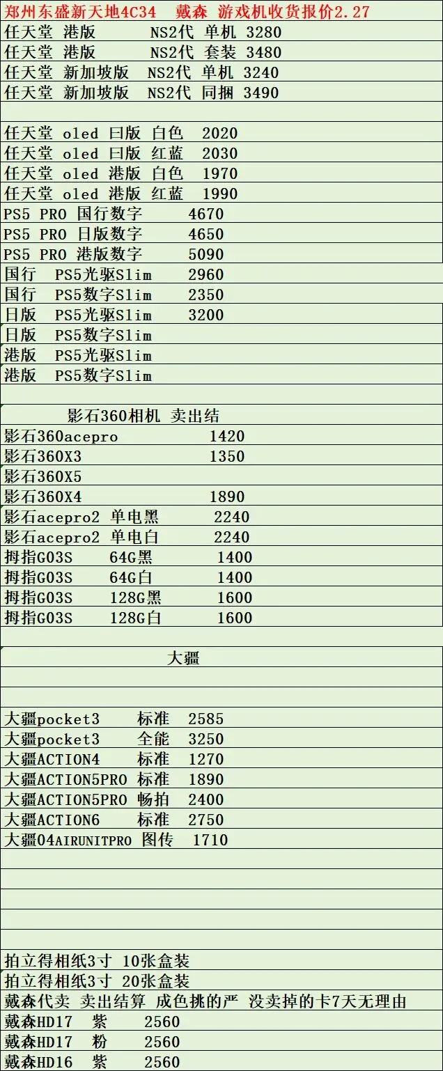 今日手机行情2月27日-最新手机价格表查询 任天堂 索尼 华硕 戴森 潮玩电子 系列产品批发参考价