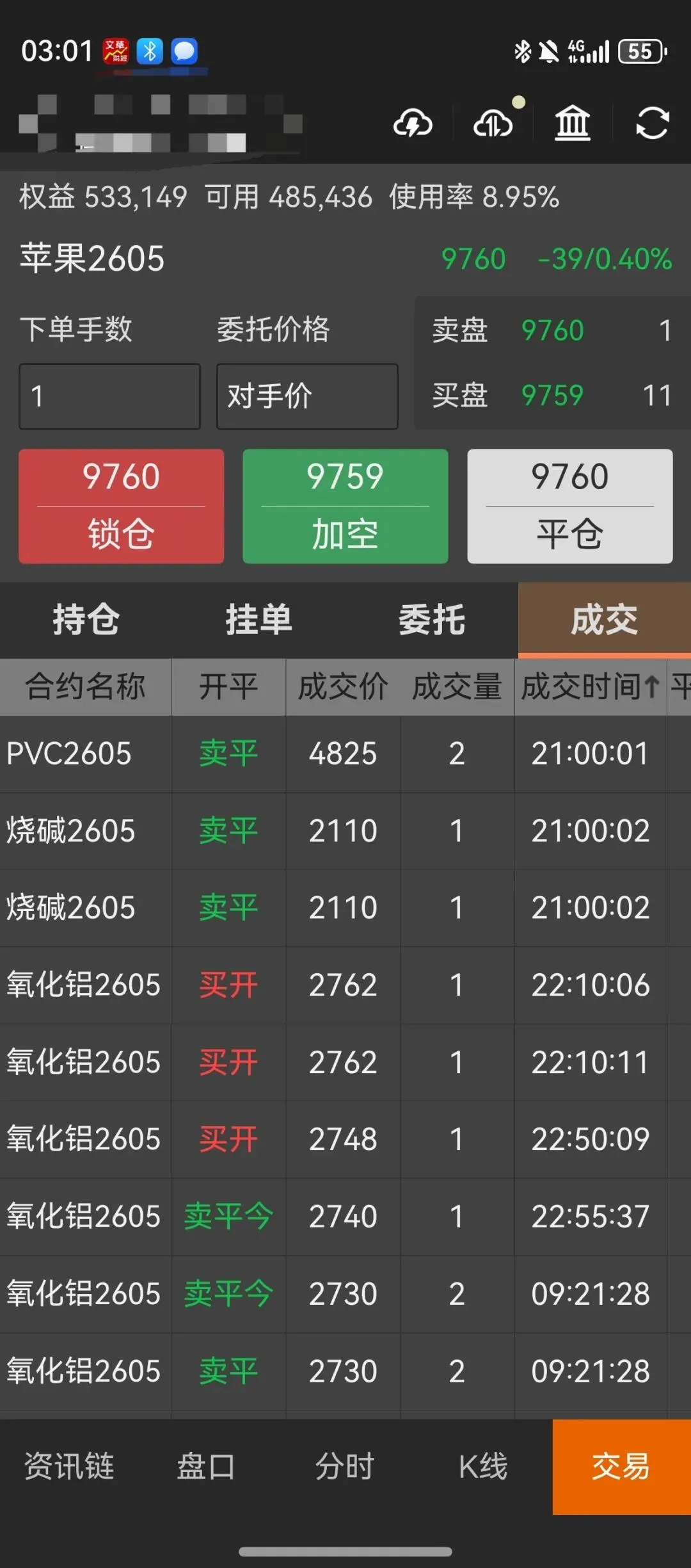 今天(20260227)所有的平仓操作,都是触发了预止损单造成。最有意思的是,氧化铝在两个价位止损后,都在这个价位开始了一定幅度的“反弹”。这种情形,最容易引起交易者情绪上的波动。总有一种“错过了一个亿”感觉,总有一种赶紧再买入的冲动,而这往往就是自己开始变换操作思路的开始,往往就是大亏损的开始。