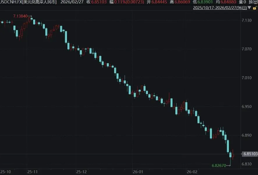 尤其是春节后,人民币汇率再次掀起一轮强势行情。刚刚三天,升值幅度接近600个基点,突破6.83关口,创下2023年4月以来新高。