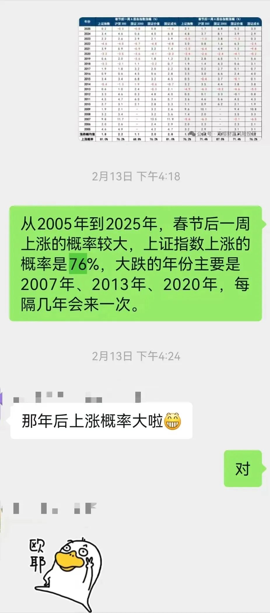 春节前一天,群里提示了要加仓,节后之后会有红包行情,恭喜操作的宝子们吃到大红包,毕竟策略都有历史统计做支撑,胜率在76%左右。