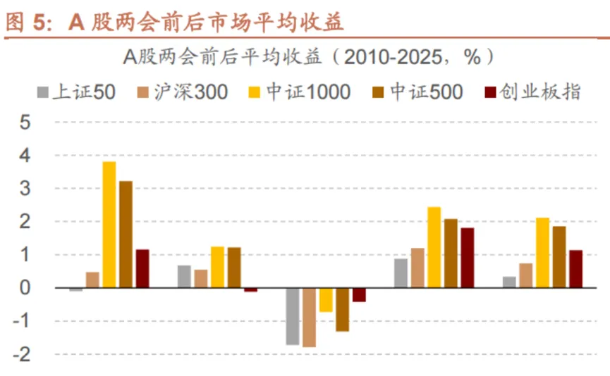 一是中证1000和中证500会跑赢上证50;二是会议期间的上涨概率最低,会前和会后的上涨概率较高。每年2月和3月,都是小微盘的天下。