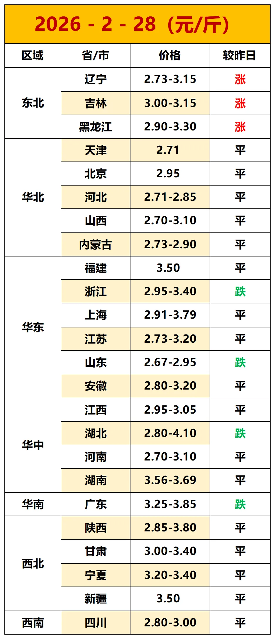2026年2月28日全国各地鸡蛋报价