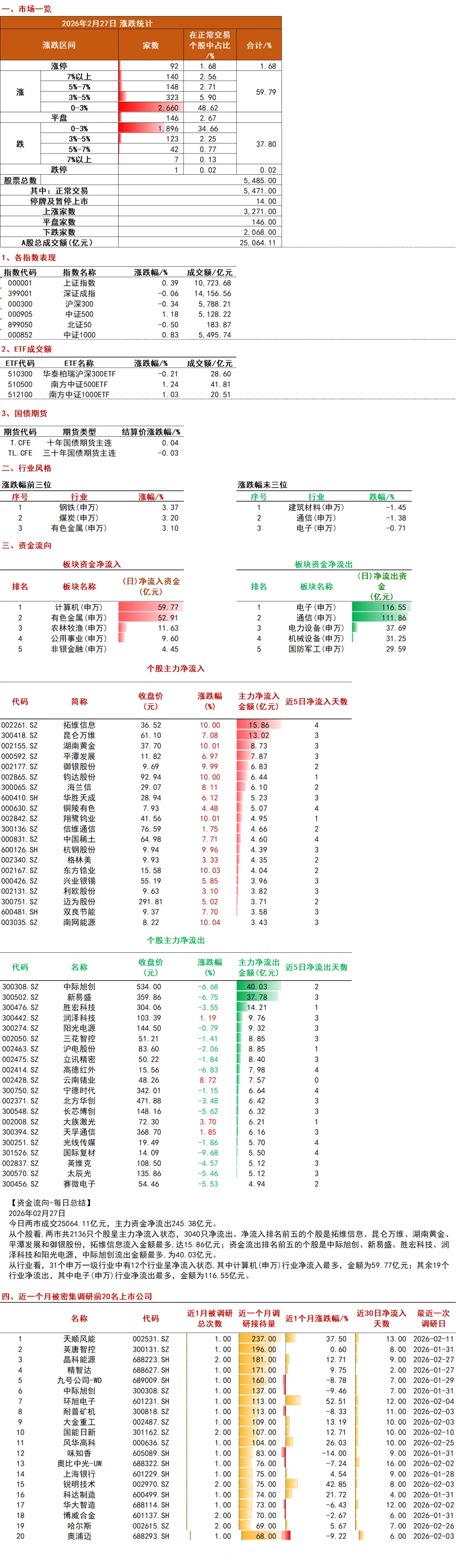 2026年2月27日市场行情点评