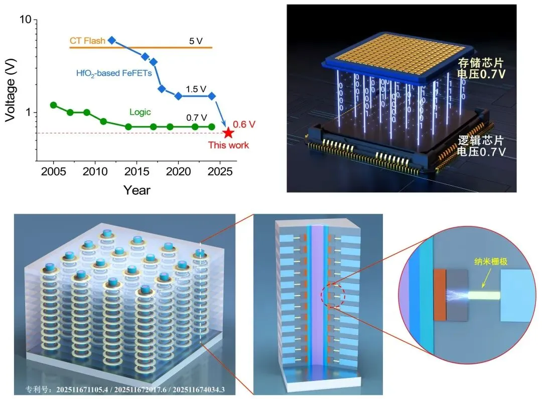 2 月 23 日,北京大学彭练矛院士团队在国际顶级期刊《科学・进展》(Science Advances)发表重大研究成果,成功研制出物理栅长仅为 1 纳米的铁电晶体管。这是目前全球尺寸最小、功耗最低的晶体管之一,其工作电压低至 0.6V,能耗较国际现有最好水平降低了一个数量级。该技术通过创新的纳米栅极结构设计,巧妙解决了传统铁电晶体管高功耗、电压不匹配的难题,为后摩尔时代芯片的性能提升和能效优化提供了全新的底层器件方案。尽管该成果目前仍处于实验室阶段,但其展现的 “存算一体” 潜力,为未来高能效 AI 芯片和数据中心的发展奠定了关键基础。