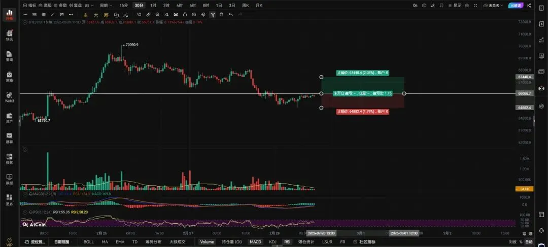 大饼带量突破66077右侧追多,65689带量跌破反抽无法收回右侧追空,带好止损。
