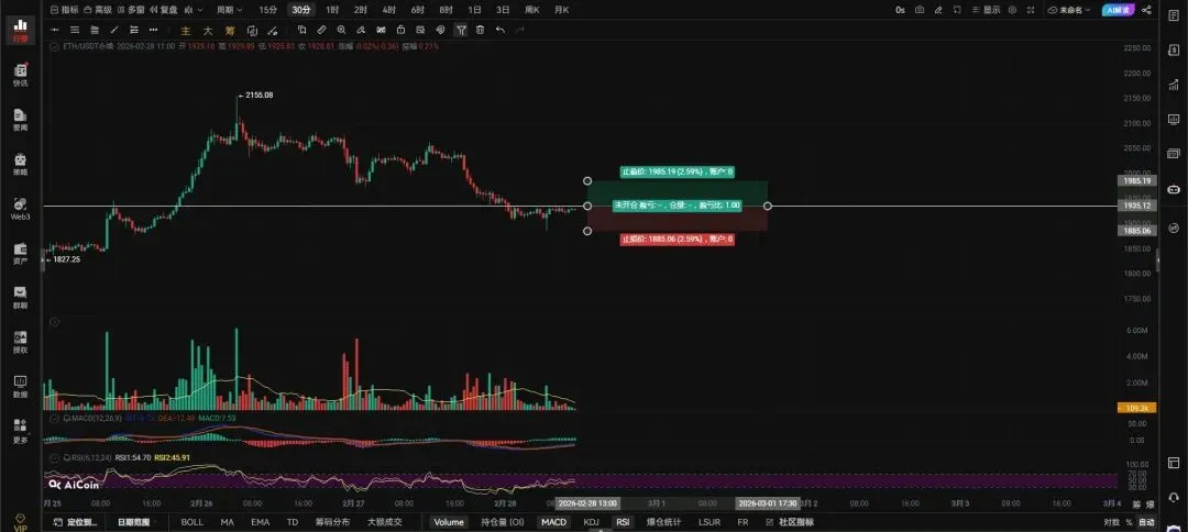 4小时级别跌破1915向下看1860-1825。二饼三角形被跌破又跌破了1928的支撑,现在正在努力站回1928之上,如果能重新回到1928之上还有去摸三角形下边界1985的机会。上不去1928看左侧白框圈出的位置这里是真空区涨的多快跌的就多快,跌破这里1853都未必能撑得住,散会。