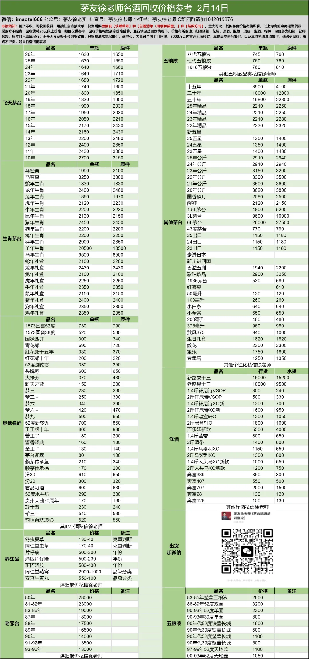 行情价:本公众号发布的价格是行情价格,是全国酒商调该品类茅台的价格,是零售价和回收价的基准价格。