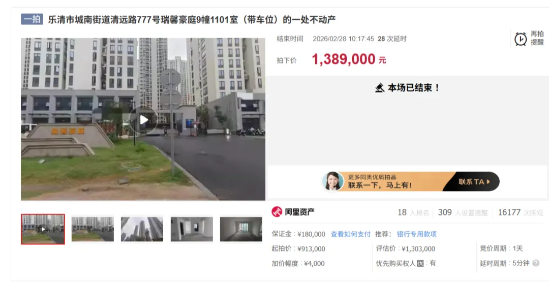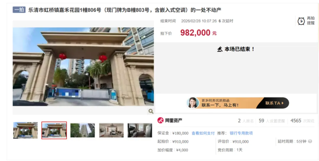 评估价600万,起拍价336万!乐清虹桥这套豪宅,经过5人疯抢,最终拍出……