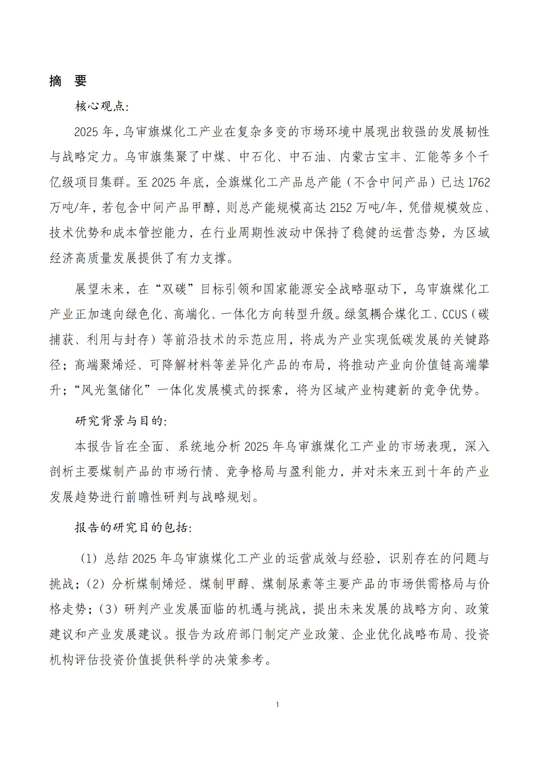 乌审旗2025年煤化工产业行情与未来发展研究报告