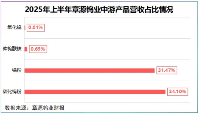 公司是全球首家工业化生产纳米钨粉的企业,2025年上半年,钨粉与碳化钨粉合计占公司总营收的52.75%,是章源钨业营收主力军。