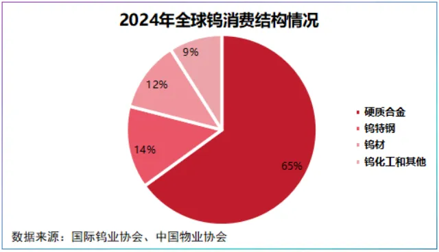 2024年全球钨消费结构中硬质合金约占65%,从高端市场来看,在商业航天中钨硬质合金用于加工火箭发动机的燃烧室、涡轮泵,以及航天器的结构件等。