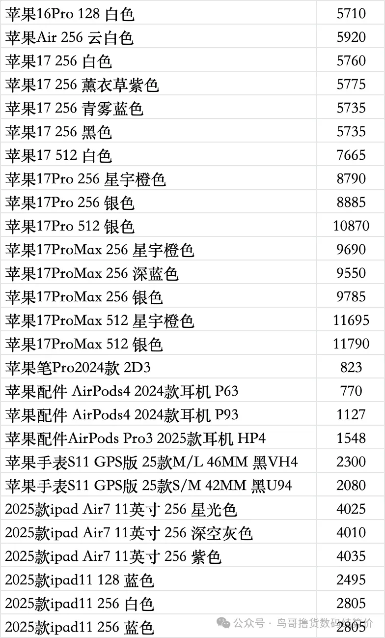 | 鸟哥收货iphone/ipad/手表系列结算价(前一天的结算价) |