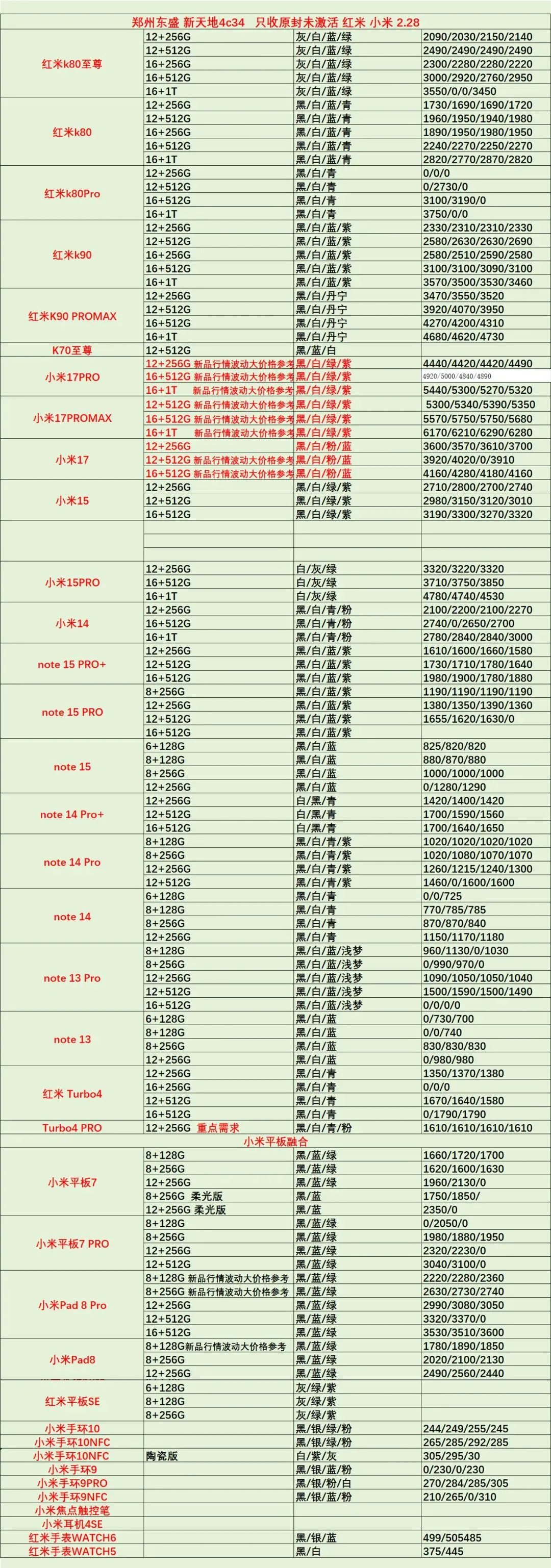 2月28日鸟哥收货全品类每日行情报价