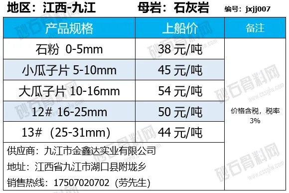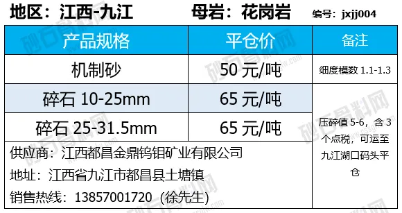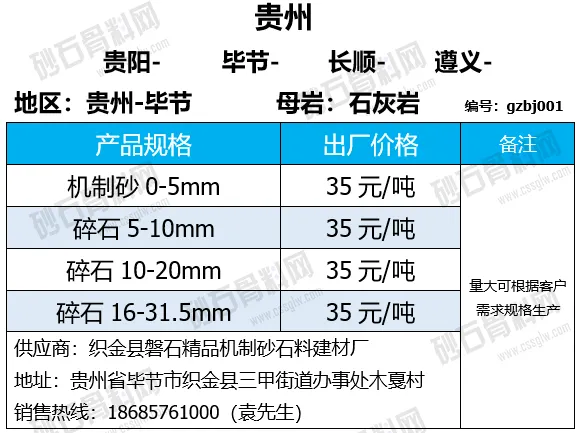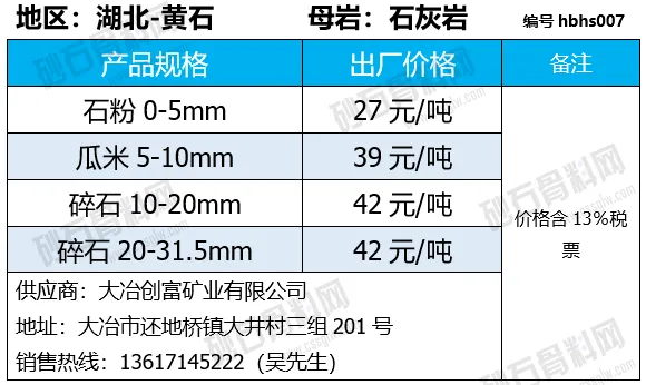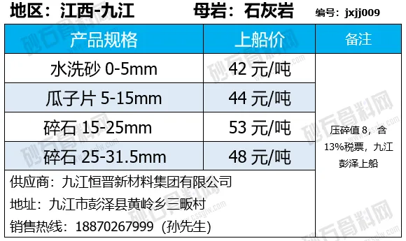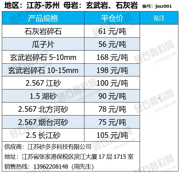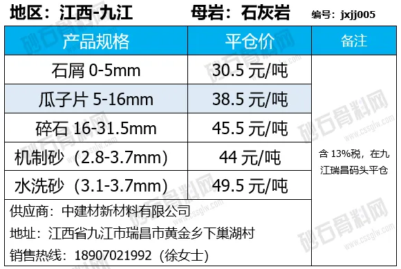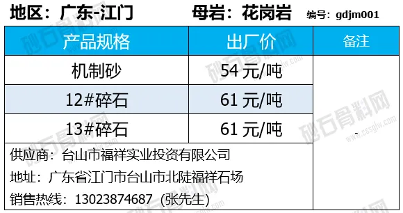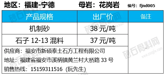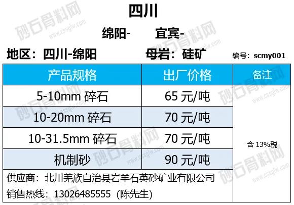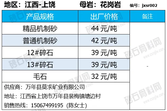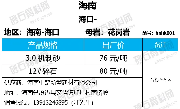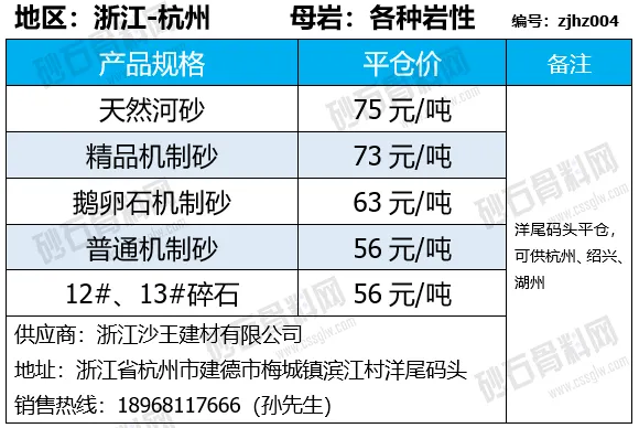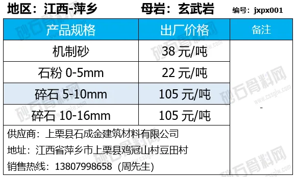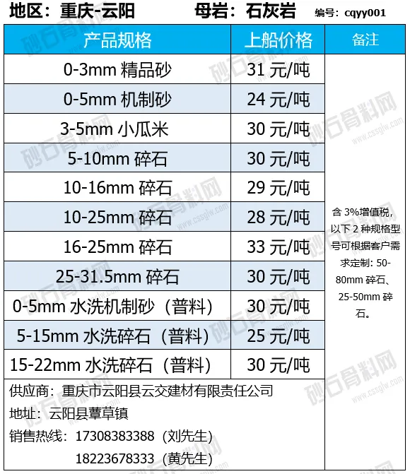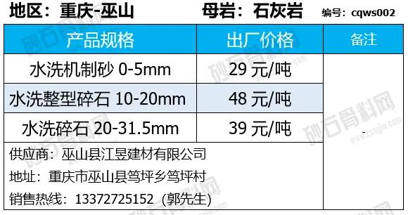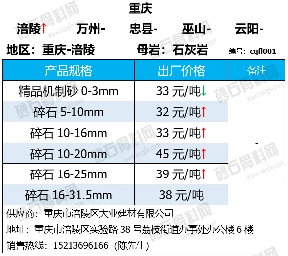 重庆涪陵机制砂、碎石上涨1-7元/吨;